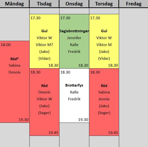 Våra träningar är uppdelade på ett sätt där vi försöker skapa träningsförutsättningar för varje medlem. Syftet är att nå en bredd där varje medlem får träning och gemenskap utifrån sin egen nivå och målsättning.